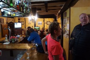 Der gestrige Abend war wieder einer der Highlights, die man nicht so oft erlebt, und wenn dann nur auf dem Jakobsweg. Die Herberge war super gut und bezahlbar, ich hatte ein Einzelzimmer. Nachdem mein Fahrrad voller Lehm und Dreck war, brachte mir der Wirt auf meine Bitte einen Schlauch zum Abspritzen. Ich bezog mein Zimmer in diesem alten und überaus gemütlichen Gebäude, und bestellte mir sogleich ein Bier, um meinen Mineralstoffmangel ausgleichen zu können. Wieder wie jeden Tag, Bilder und GPS Daten aufs IPad laden und das Tagebuch schreiben.