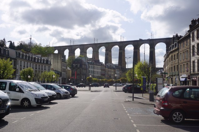 Die Stadt Morlaix mit seinem Viadukt, oben fährt der Zug
