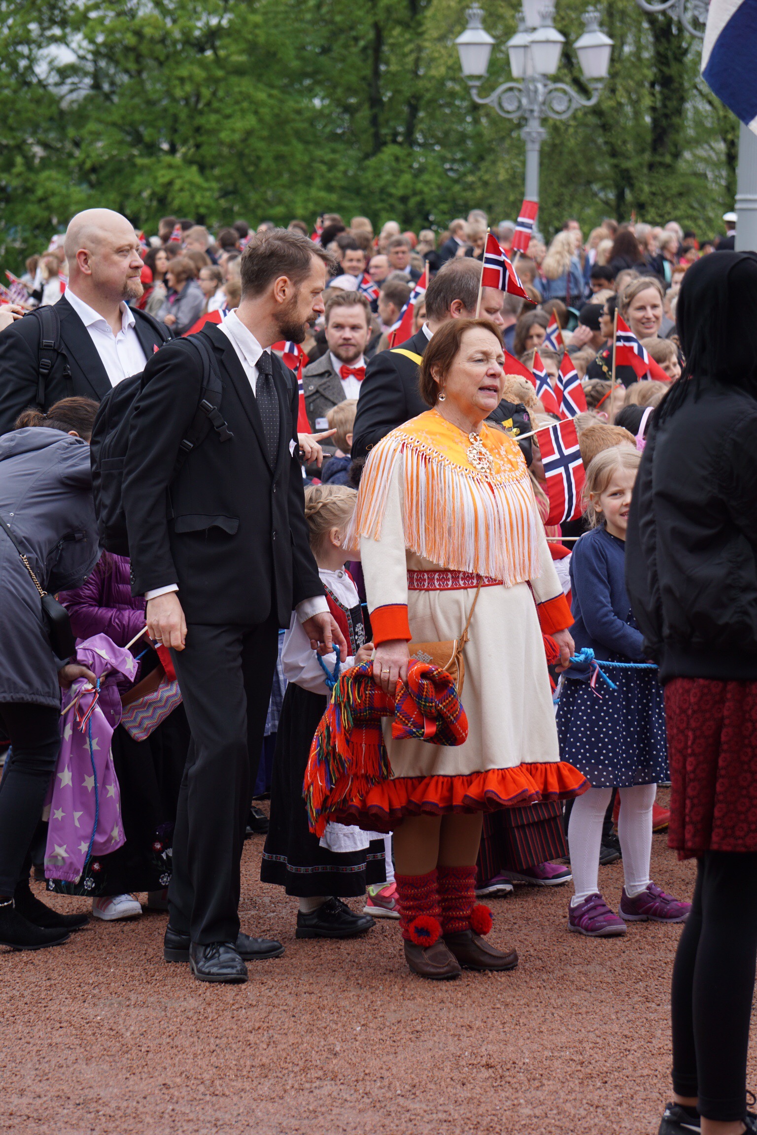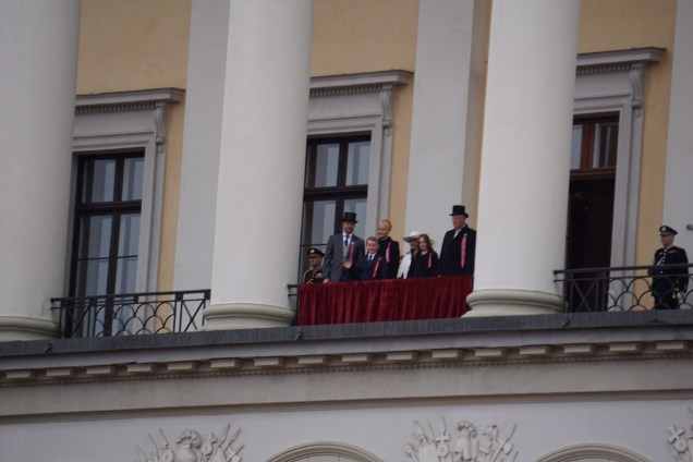 Heute früh sind wir zum „Königlichen Schloss“ gefahren, um die an der königlichen Familie vorbeiziehenden Schulen zu sehen. Es ziehen nur Kinder an der königlichen Familie vorbei, denn sie symbolisieren die Zukunft des Landes. Jede Schule hat ihr eigenes Wappen. Heute ist der Tag, an dem ganz Norwegen ihre Unabhängigkeit von Schweden feiert!