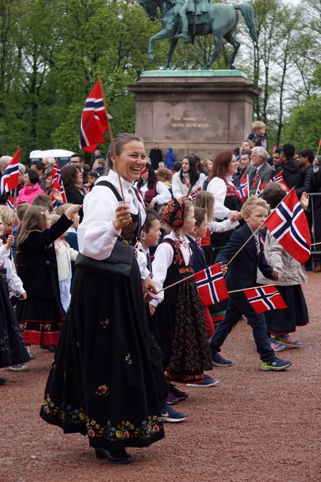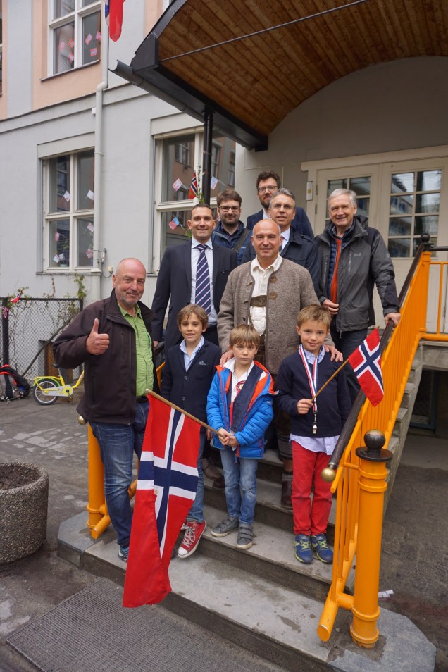 Die 2 Jungs, Alexander und Maximilan waren in der 66. Abordnung mit ihrer Schule, der deutschen Gesamtschule in Oslo. Es ist ein wunderbares Fest, denn tatsächlich sind die Kinder die Protagonisten des Nationalfeiertages. Man begrüßt die Leute mit „alles gute zu diesem besonderen Tag – Gratulerer med dagen!