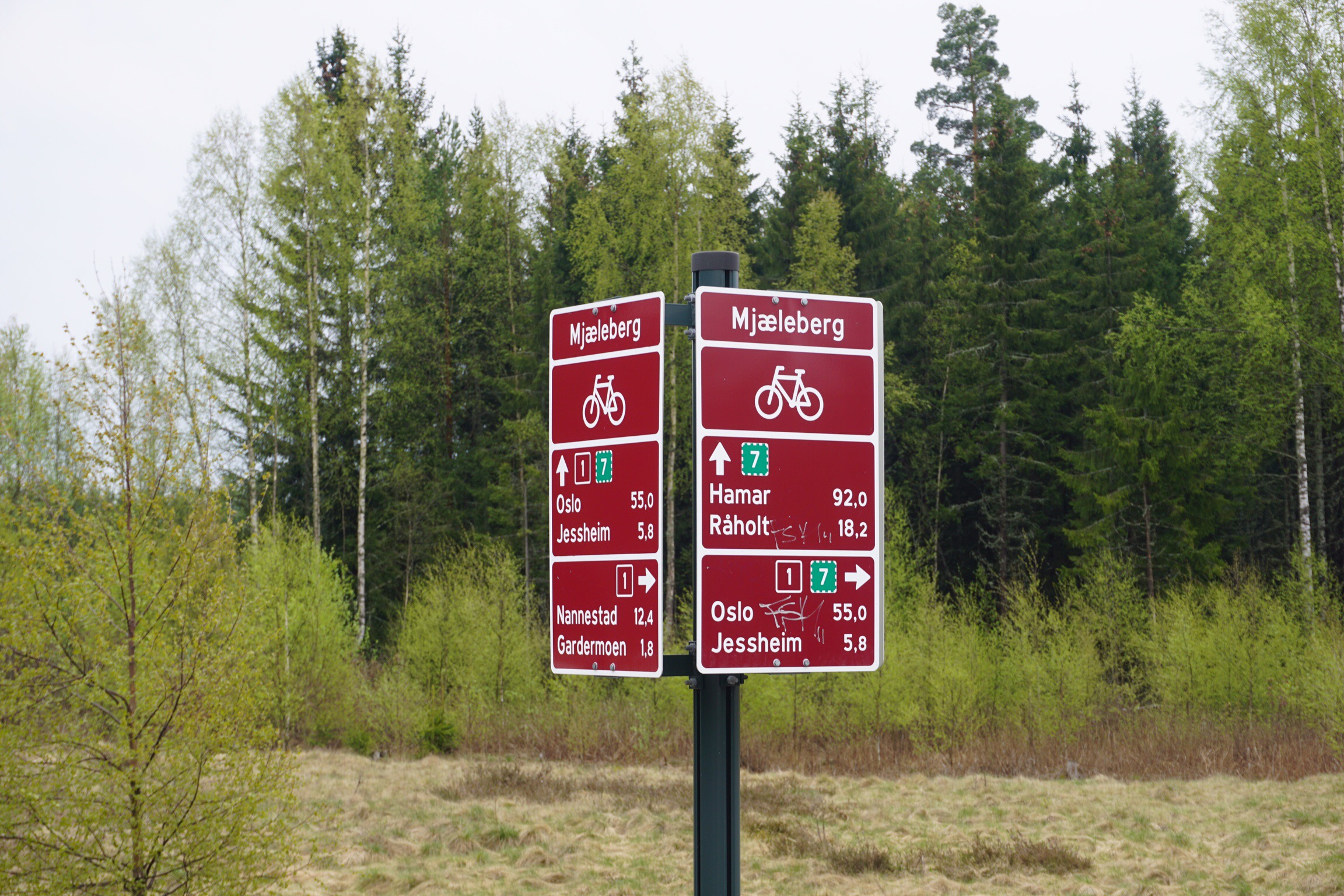 Der Radweg nach Trondheim ist mit der Nummer 7 ausgeschildert. Es ist der Fahrradweg für die Olavswegpilger.