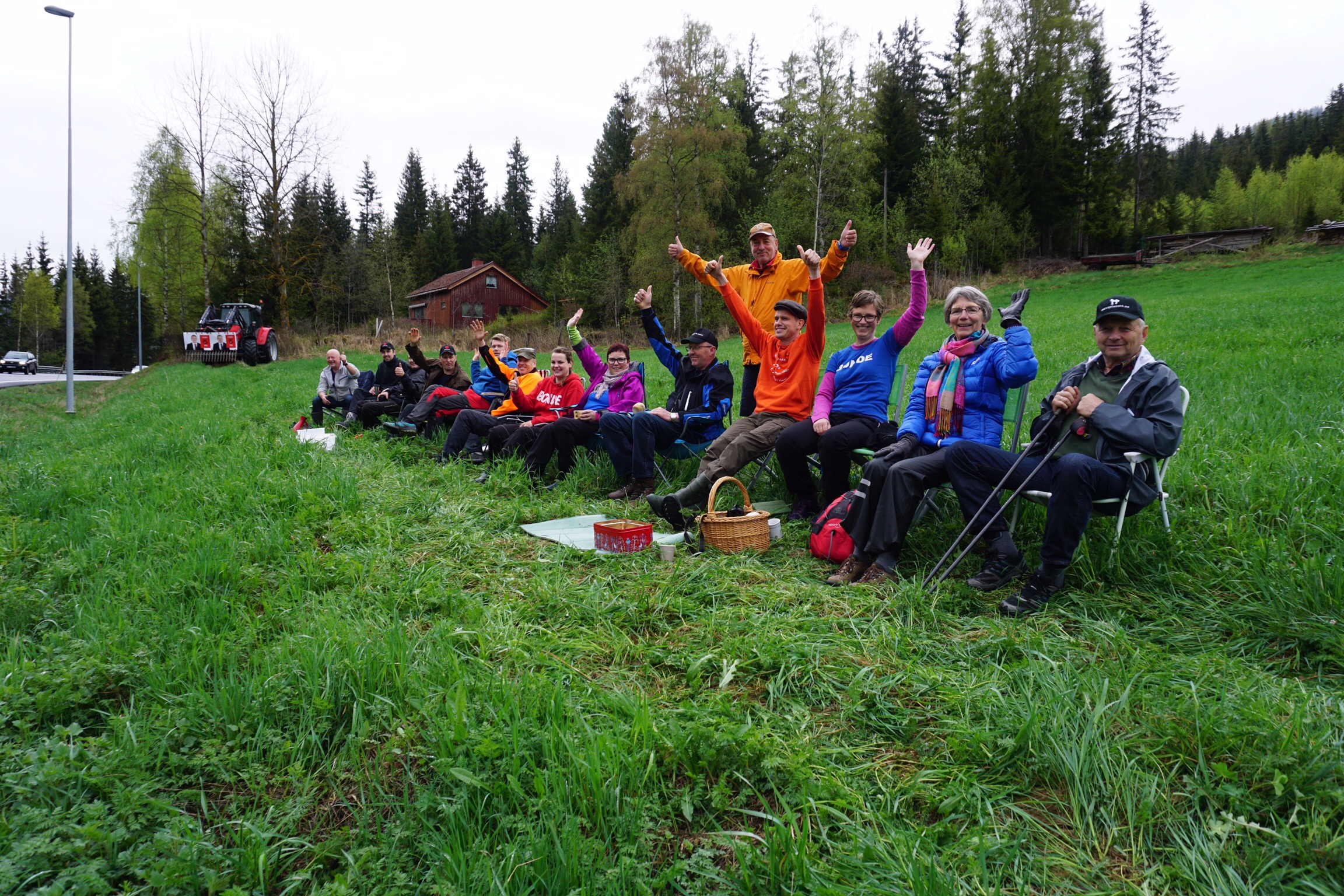 Als ich dann weiterfuhr, entschied ich mich in Tretten auf die „Bundesstraße“ zu fahren, und sah nach 10 Minuten neben dieser bescheidenen Straße 20 Leute auf Campinghockern sitzen, ein irgendwie absurder Anblick. Als sie mir winkten, hielt ich an, und fragte sie, „was macht ihr hier, das ist doch kein Platz für ein Picknick!“