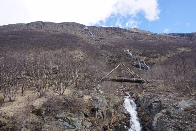 Der Olavsweg führt hier über diese Brücke und endet dann in einem äußerst schmalen Pfad, der steilen Pfad nach oben.