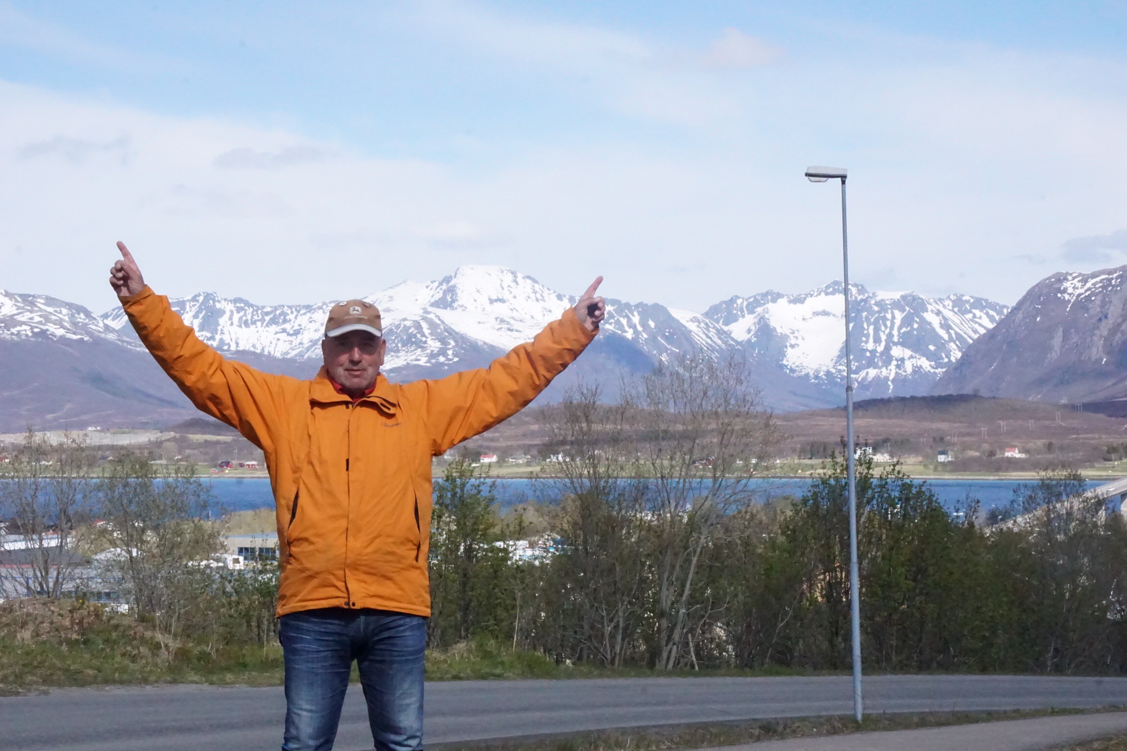 Als ich gestern an der Fähre stand, traf ich doch glatt Pia, eine junge Studentin aus Aachen, die ich Stansund in der Jugenherberge traf. Bis Andenes gibt es keine Jugenherbergen oder dergleichen, sodass wir vereinbarten miteinander eine Hütte zu mieten. Der Campingplatz öffnet am Dienstag offiziell seine Pforten. Der Bruder des Inhabers lud uns zum Essen ein. Nachdem er selbst aus Indien kommt, gab es indisches Essen vom Grill, mir hats gut geschmeckt, und der Typ und seine Familie waren sehr nett.