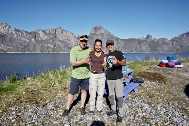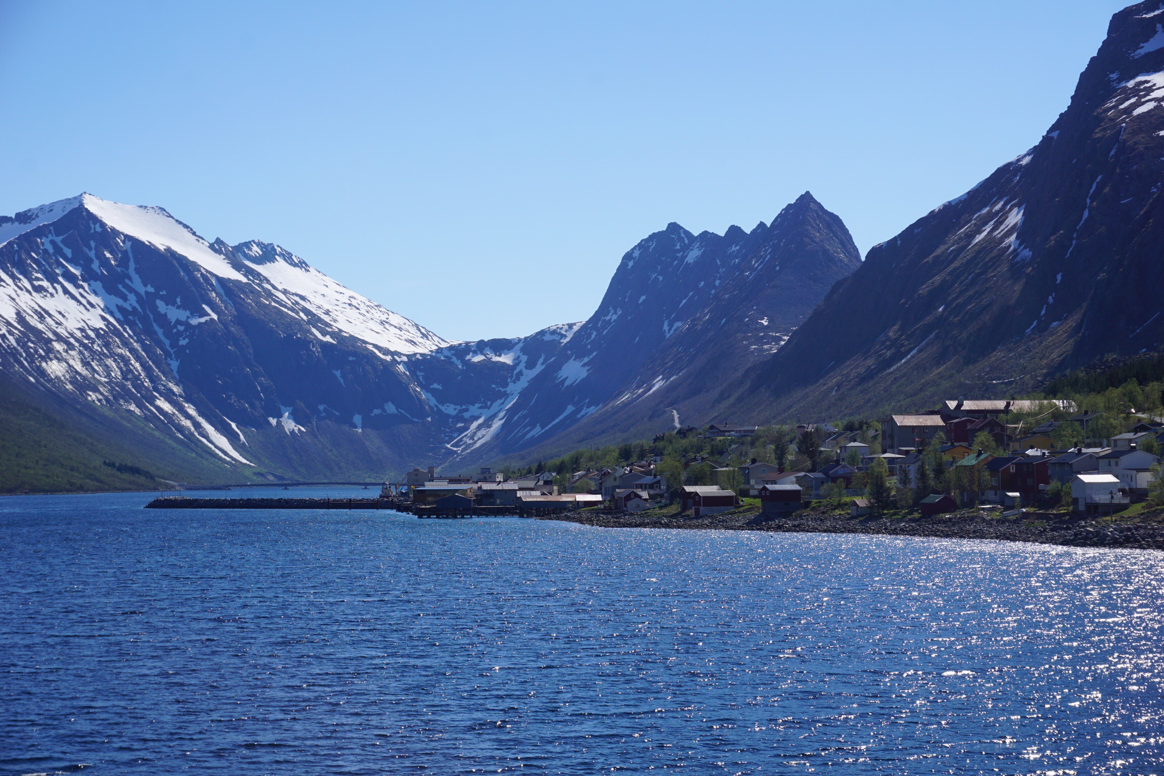 Ich denke, man sollte nicht in Superlativen denken, aber heute warwirklich ein grandioser und auch sehr anstrengender Tag. Früh morgens um 6:45 Uhr war aufstehen angesagt, alles packen, und zwar in der richtigen Reihenfolge in die richtigen Taschen, dann eine schnellen Kaffee und auf ging es zur 4 Kilometer entfernten Fähre auf das Festland, auf die Halbinsel Senja.