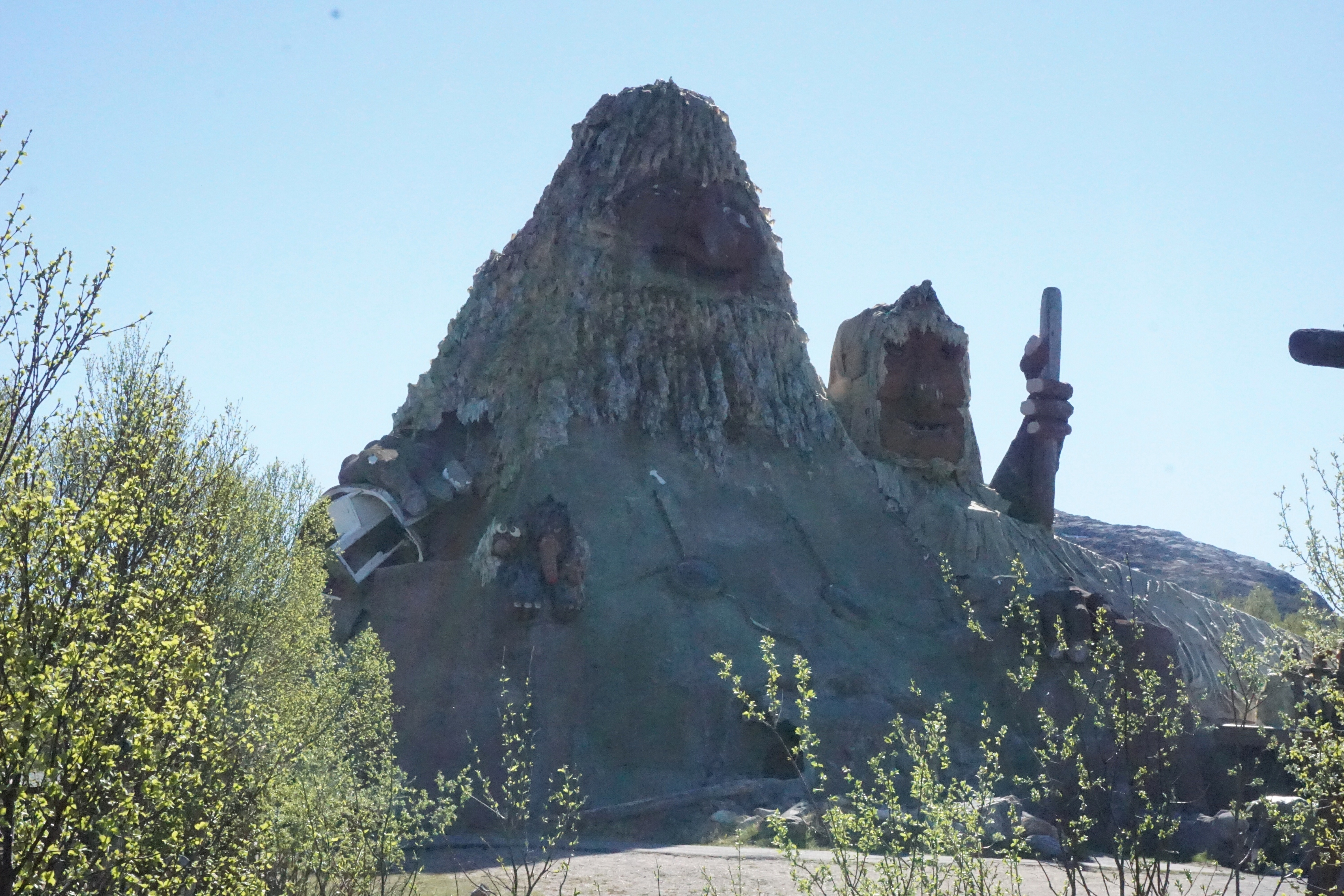 Von einem Fjord zum anderen, über die zum größten Teil noch tiefverschneiten Berge, war es heute richtig anstrengend. Wir sahen den größten Troll Norwegens und seinen Herrn, der ihn geschafffen hat.