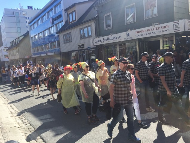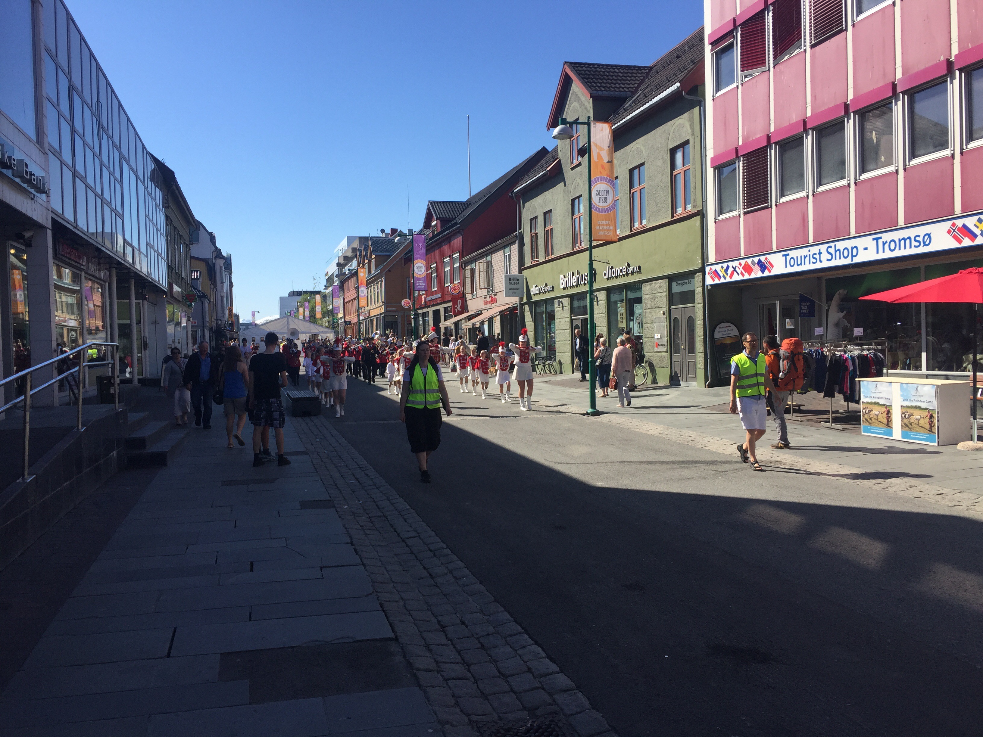 Scheinbar ist Tromsøschon vor 9000 Jahren besiedelt worden, Fakt ist jedenfalls, dass die erste Kirche im Jahre 1252 erbaut wurde. Hier leben 74.000 Menschen, davon 7000 Studenten aus allen Herren Ländern. Tromsø ist eine sehr junge Stadt, hier rockt das Leben. Heute in der Frühe zogen schon junge Gruppen musizierend durch die Stadt.