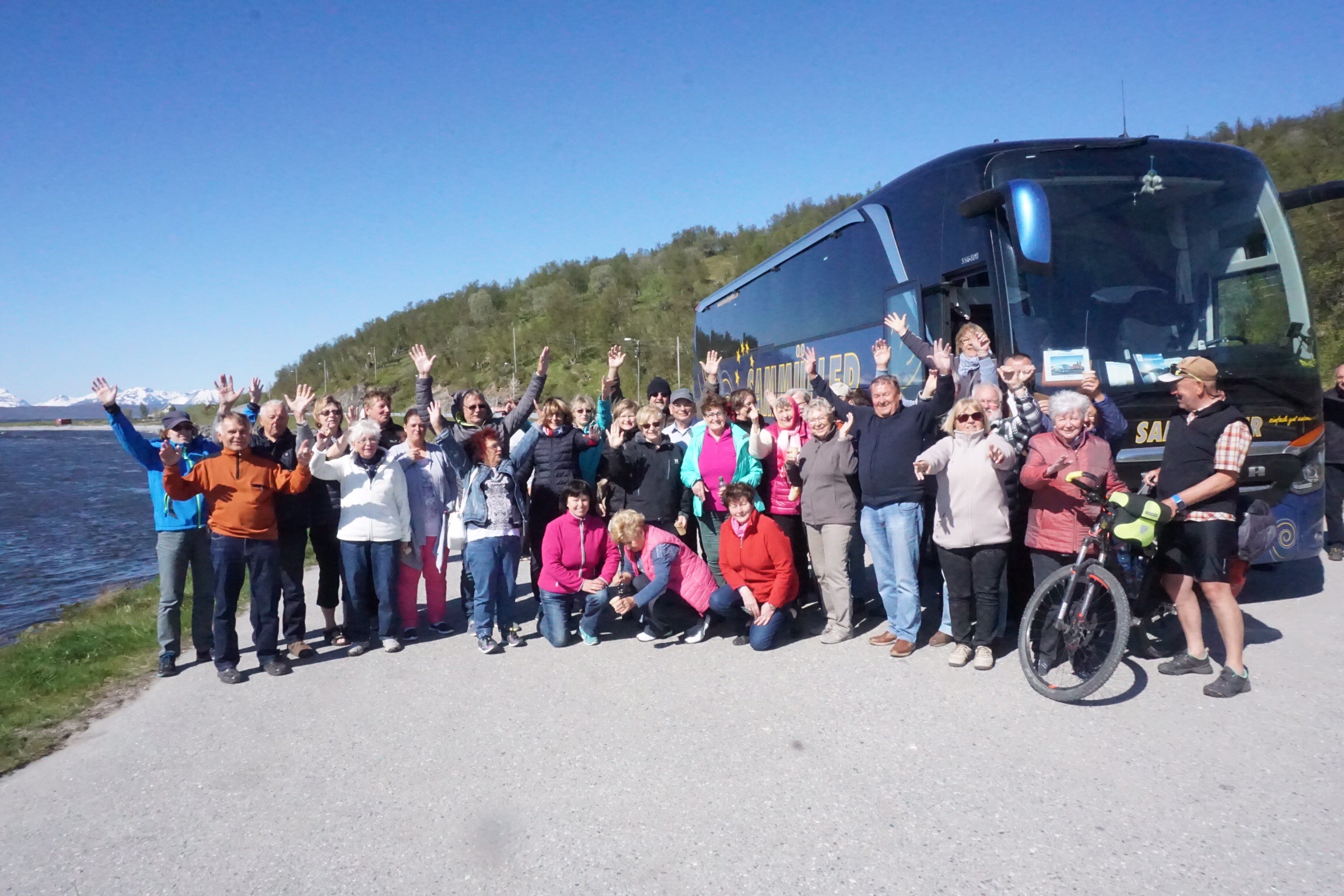 Wir machten ein Gruppenphoto, der Radler mit den Bustouristen – ein Bild für die Galerie.