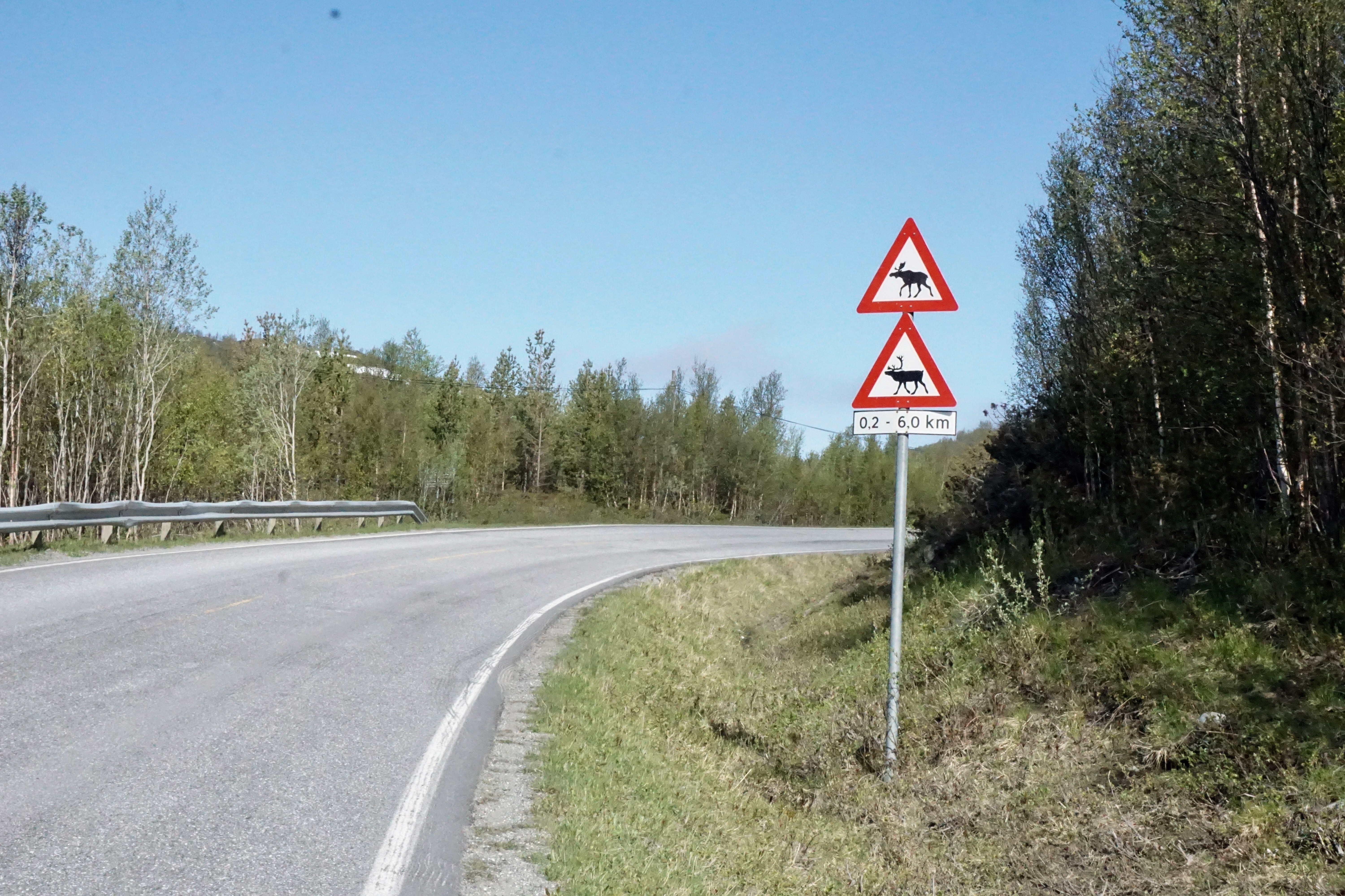 Achtung es queren zunächst Elche, danach Rentiere