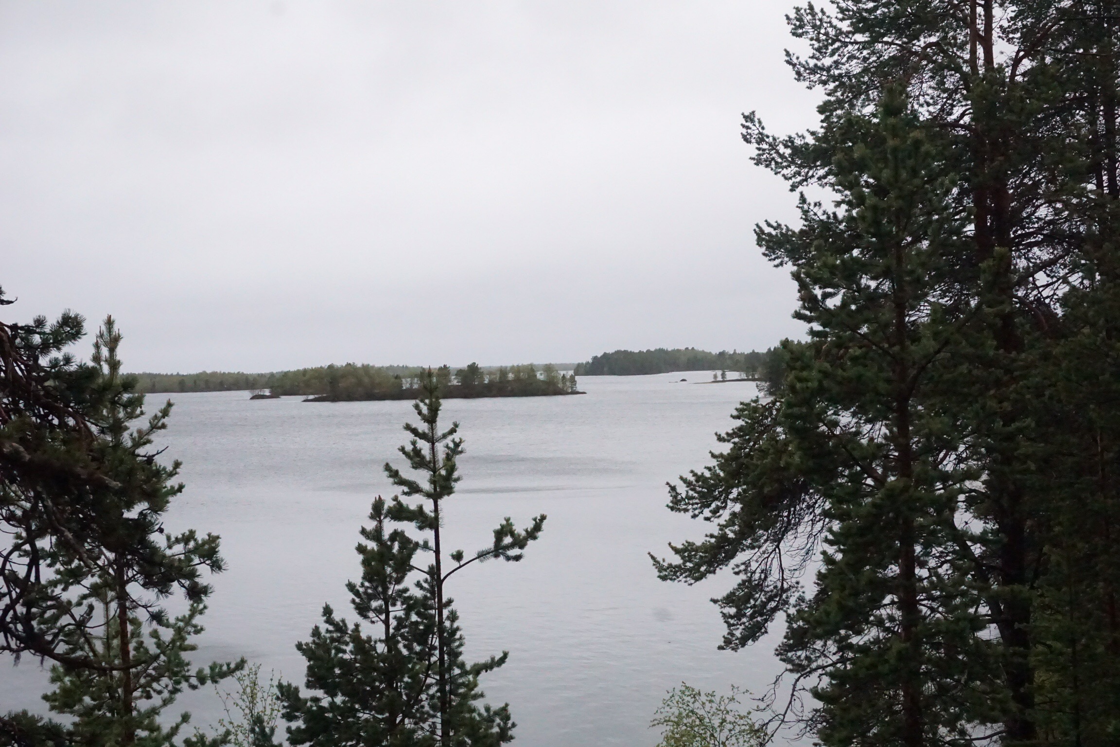 Es wechseln hier reine Nadelwälder mit Birkenwälder und gemischten Wäldern ab. Dazwischen sieht man viel viel Wasser, Seen und Felsen.