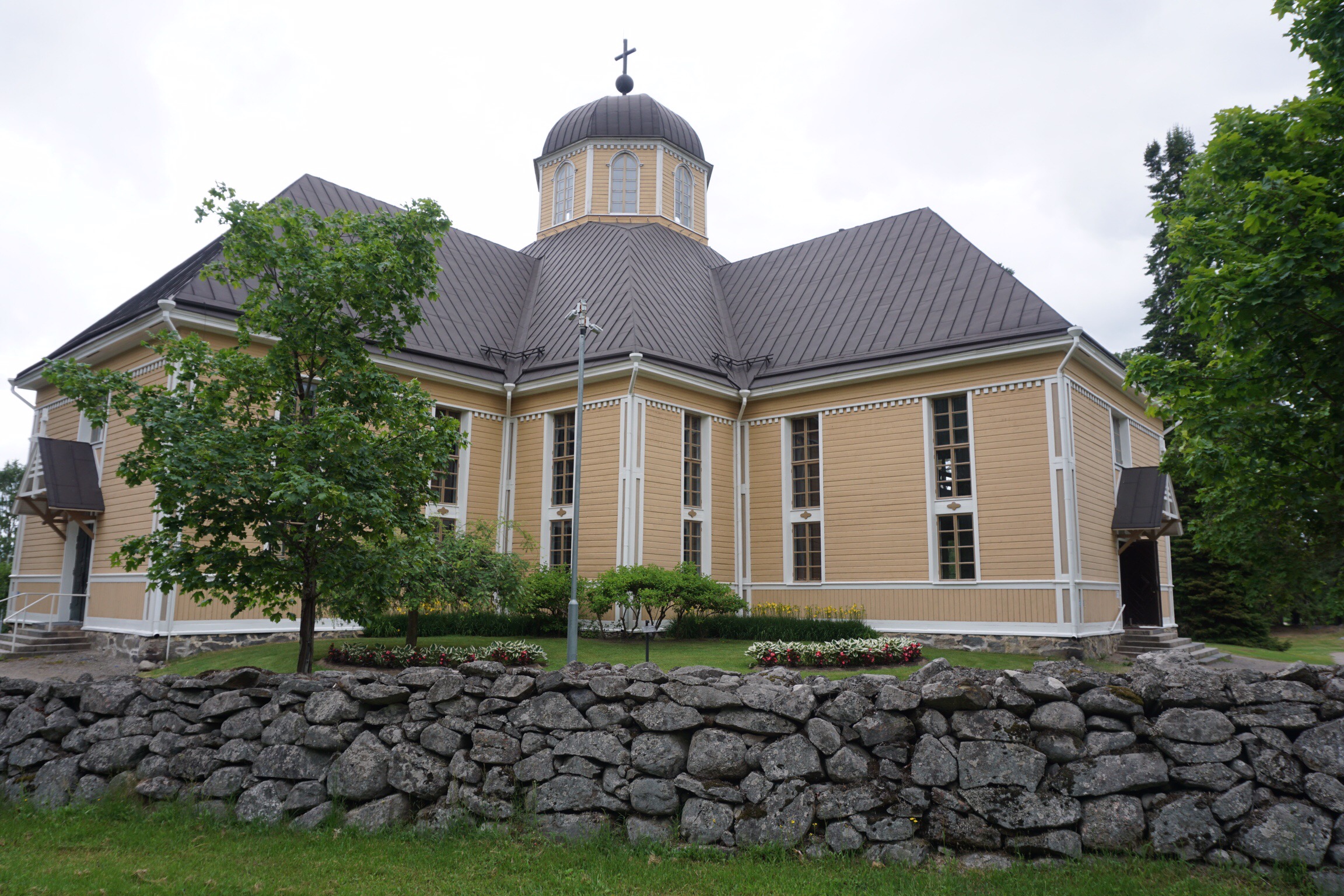 Erst am Nachmittag entdeckte ich eine wunderschöne evangelische Kirche, die aus Holz gebaute Kirche von Uukuniemi. Vorher gab es nichts außer Wald und Wasser, allerdings habe ich mich nicht genau an den Eurovelo 13 gehalten.