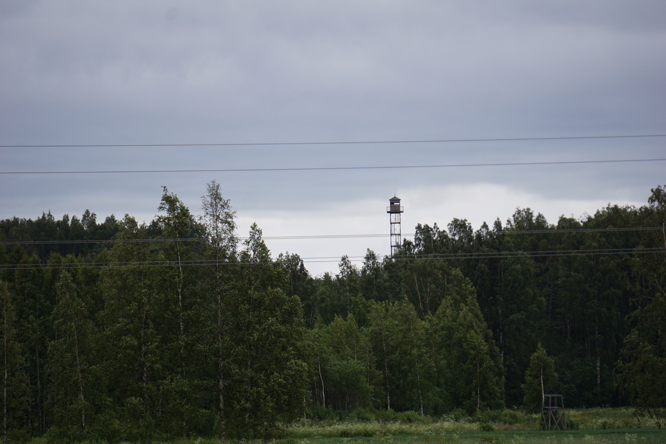 Ich werde heute nicht alt werden, bald liege ich im Bett! Diese Stadt befindet sich an der russischen Grenze. Von der Straße aus konnte ich den Wachturm erkennen, so war es auch früher an der innerdeutschen Grenze.