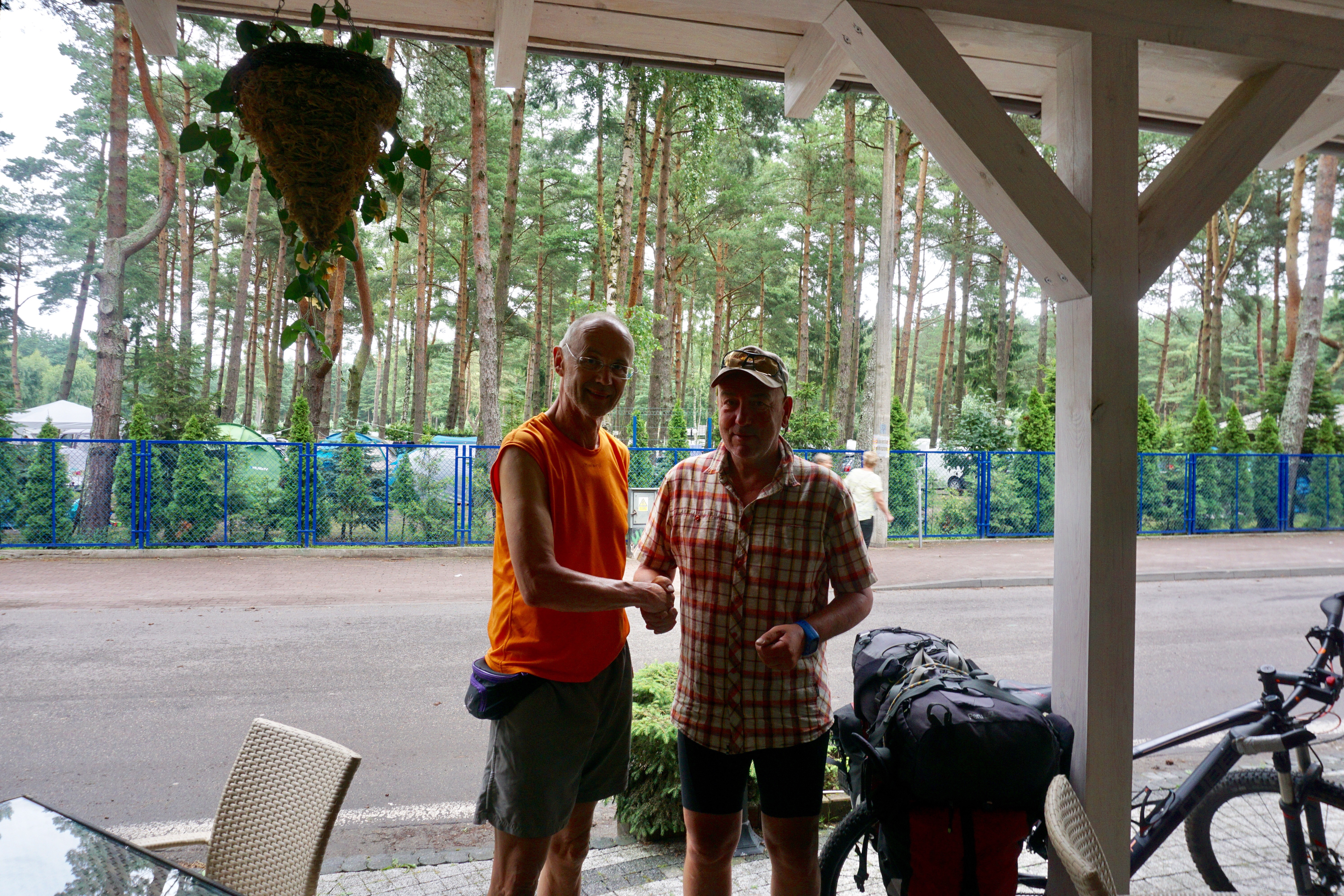 Das waren heute nicht mehr als 72 Kilometer, denn mehr war einfach nicht drin. Gestern Abend gingen Fritz und ich zum Sandstrand, um dort in einem Lokal zu Abend zu essen. Dann gingen wir langsam zurück zum Campingplatz, und ein fürchterliches Gewitter zog über uns drüber. In einer kurzen Regenpause ging ich zu meinem Zelt, und musste leider feststellen, dass sich genau vor meinem Eingang eine riesige Pfütze befand. Irgendwie habe ich mich halbwegs trocken ins Zelt gekämpft. Um 6 Uhr früh kam nochmals ein schöner Schauer, sodass ich bis 8 Uhr liegen blieb.