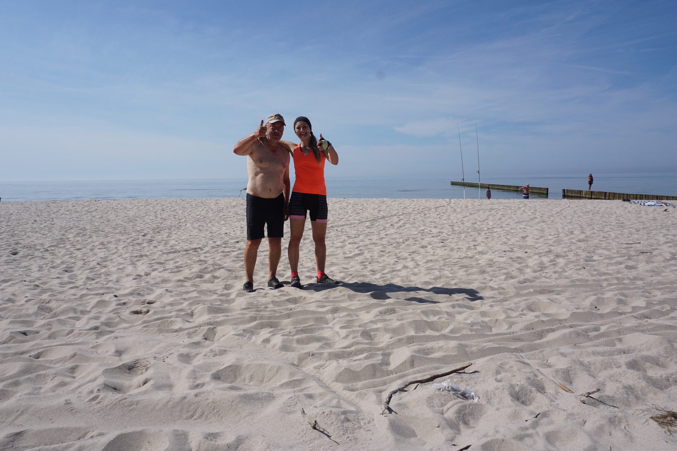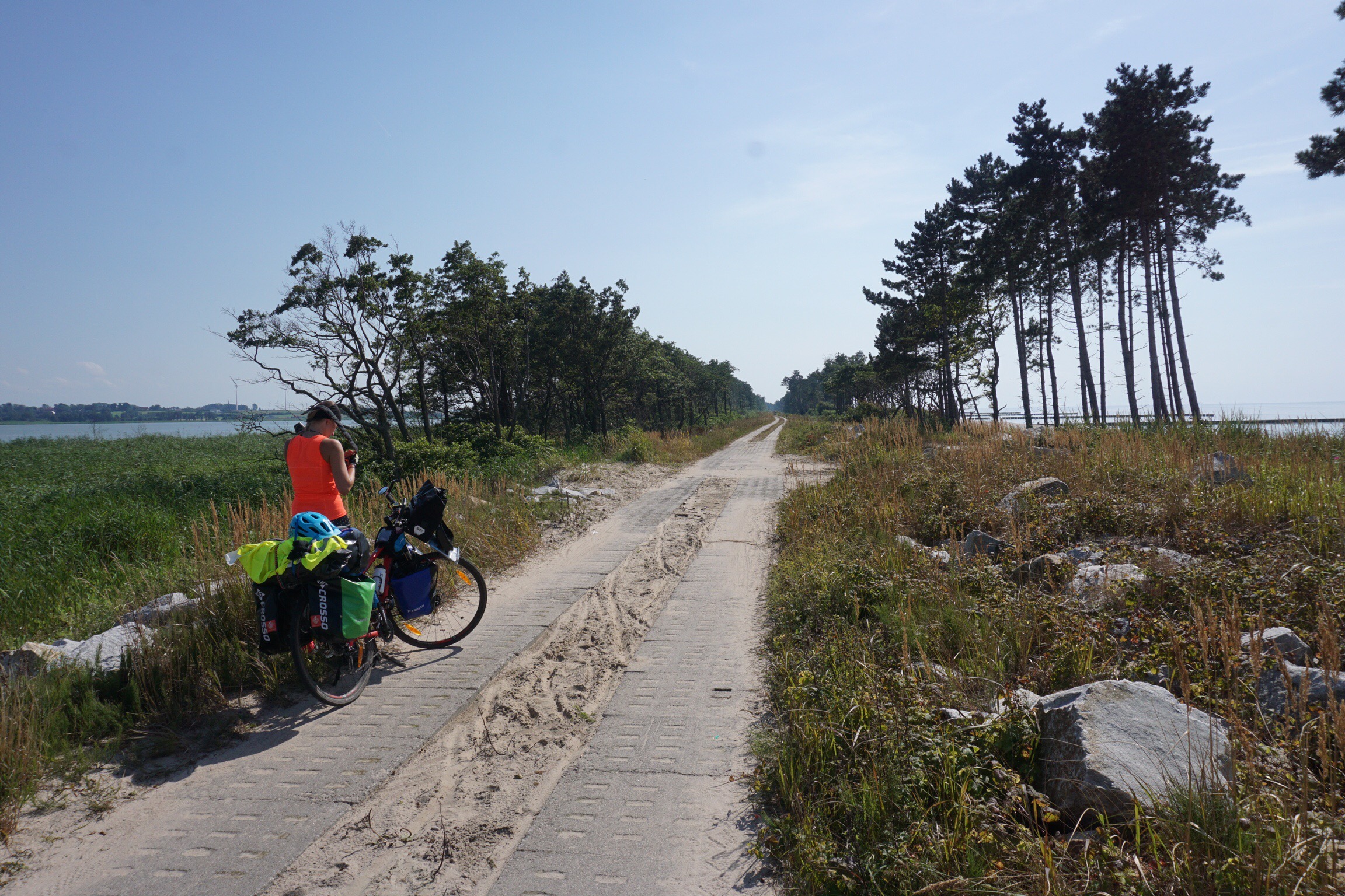 Links der See, rechts das Meer und in der Mitte die hübsche polnische Radlerin