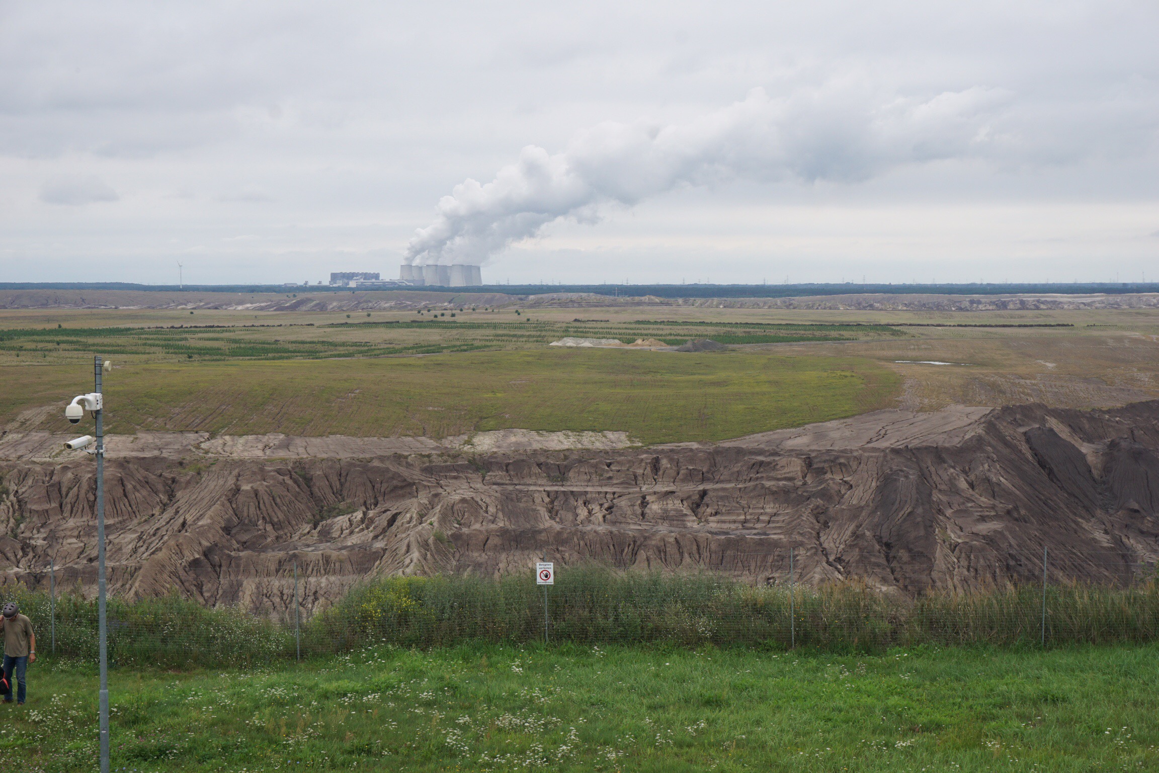 Vorbei ging es an dem Braunkohle Tagebau in Jänschwalde. 60 Quadratkilometer umfasst das Gelände, von der Aussichtsplattform erscheint es gigantisch zu sein. 2 Berliner Radler erzählten mir die Hintergründe, und wieviele Ortschaften dem Tagebau zu Opfer fielen.