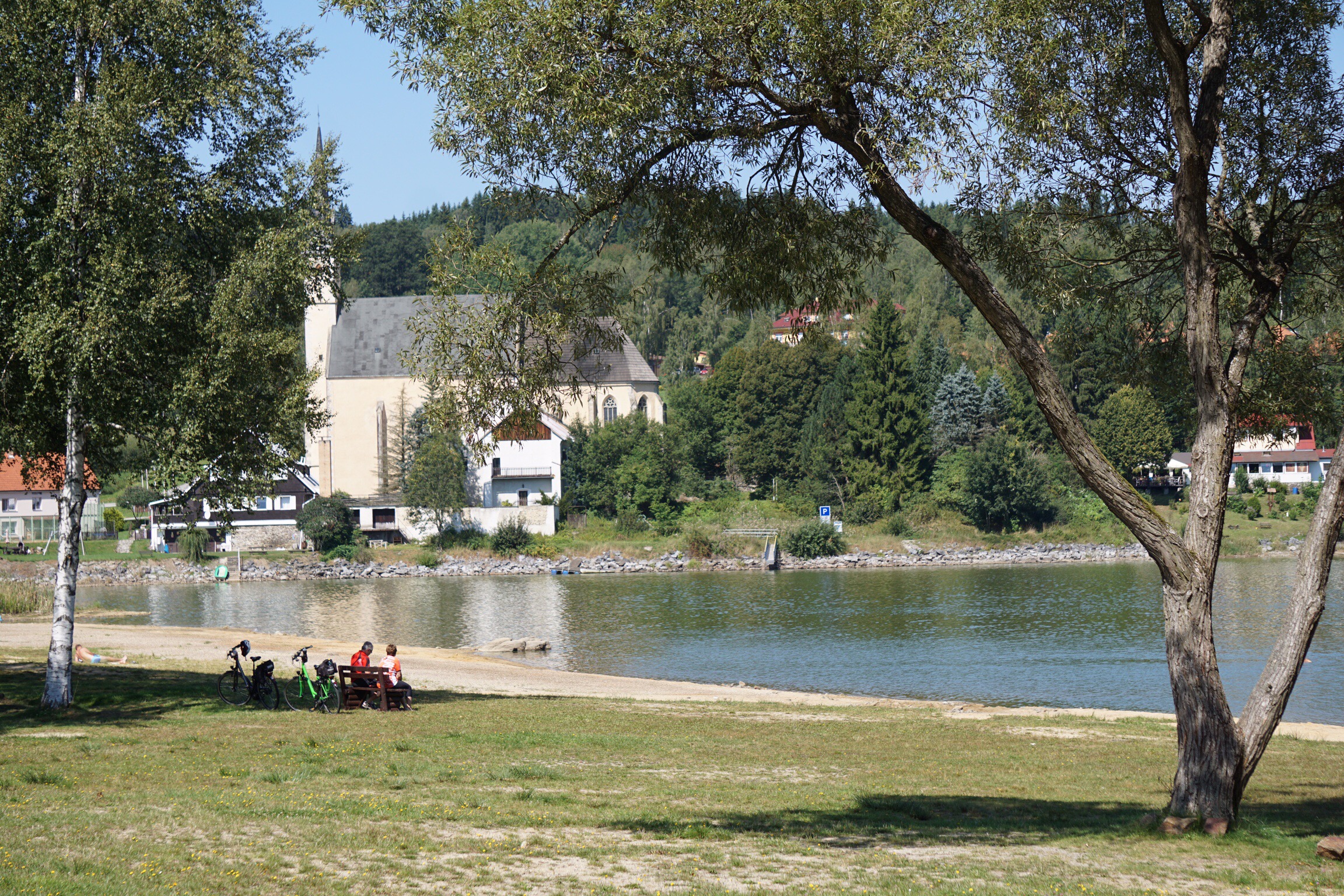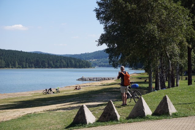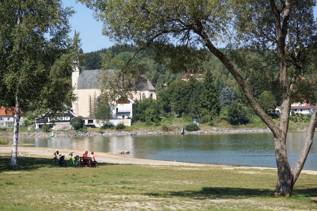 Nach einem schönen Abend in Aigen mit dem Biersommelier Weltmeister Karl, gelang mir der Start nicht flüssig wie sonst. Das Wetter war klasse, und die Fahrradwege einmalig, denn wir führen wieder über die Grenze nach Tschechien an den Moldaustausee. Das ist eine wunderschöne Landschaft in zum Teil ursprünglicher Natur.
