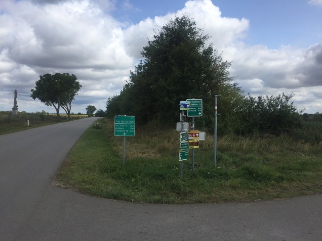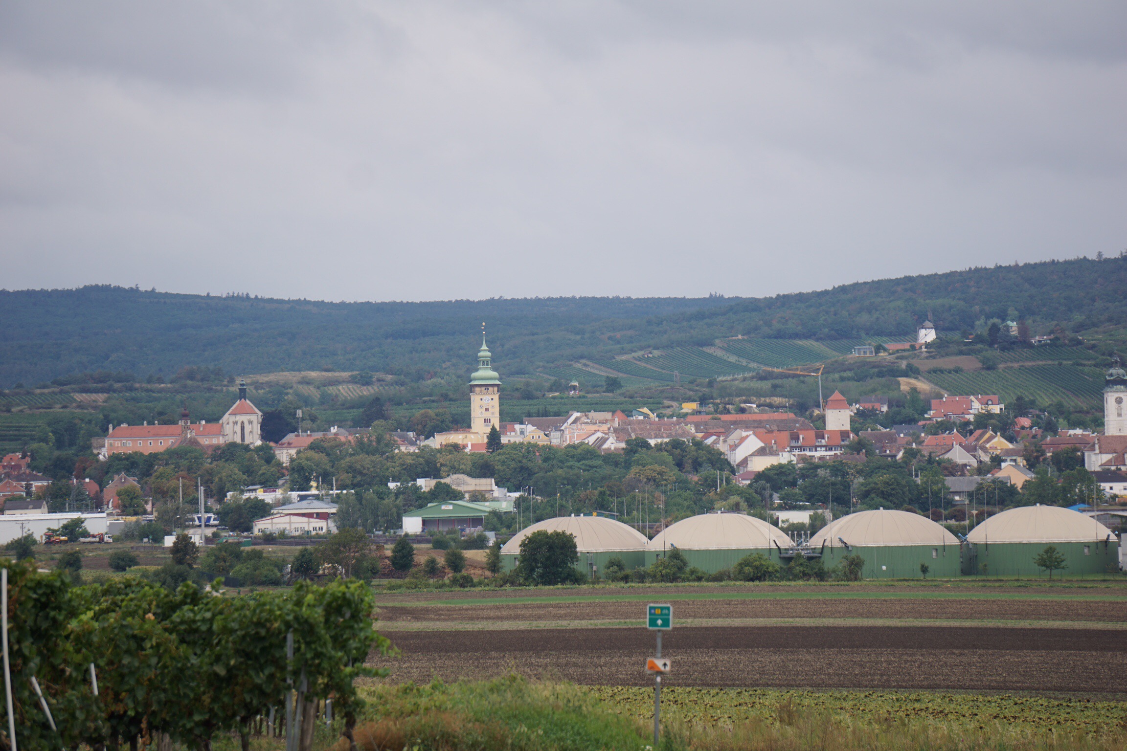 Als ich heute nach einem reichlichen Frühstück – ich war gestern in einer Pension – um 9:30 Uhr startete, war es ungefähr 14 Grad kalt. Die Chefin sagte, heute sei der meteorologische Herbstbeginn, und so fühlt es sich auch an. Ich musste meine Softshell Jacke anziehen um nicht zu erfrieren. Der Wind war heute nicht mein Freund, ich musste mich also wieder einmal quälen, um vorwärts zu kommen. Den ganzen Tag fuhr ich durch die niederösterreichischen Weinberge, und stellte mir die Frage, wer das alles trinken solle. Die Radwege sind, wie in ganz Österreich perfekt beschildert, sodass man sich fast nicht verfahren kann. Es gibt den Chardonnay Weg, den Veltliner Weg, den Silvaner Weg, ich aber fahre auf dem Iron Curtain Trail, der mit den Weinwegen zum Teil deckungsgleich ist.
