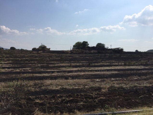 Um 8 Uhr saß ich dann wieder auf meinem Bock, weiterhin in Richtung Athen, in den Süden. Es war relativ frisch, aber warm genug, kurzärmlig und mit einer Softshell Weste zu radeln. Um 13 Uhr waren dann 60 Kilometer hinter mir, ich war also voll im Plan. Oft ging es direkt an der Autobahn entlang, bergauf und bergab, bis ich plötzlich feststellen musste, dass jetzt die Teerstrasse zu Ende ist. Als ich dann noch 6 oder 7 große Köter in 50 Meter Entfernung auf der Straße stehen sah, wurde mir ganz anders. Ich kam mir jetzt vor, wie in dem Klassiker „High Noon“. Langsam drehte ich mich mit meinem Fahrrad um, und fing an die Flucht zu ergreifen, was diese Hunde auf die Idee brachte nun bellend zu attackieren. Das Adrenalin begann jetzt zu wirken, ich fuhr wie ein Wahnsinniger den kurzen Berg hoch und war da dann endlich in Sicherheit. Was geht denn hier ab? Ao etwas habe ich noch nicht erlebt.