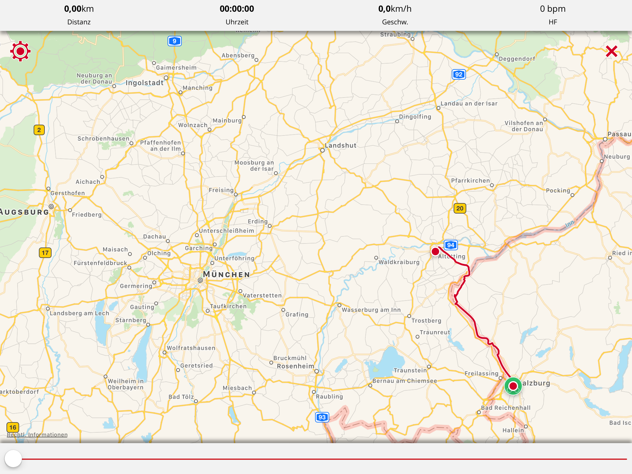 über Regensburg-Passau- längs Inn – Tittmoning und Oberdorf.