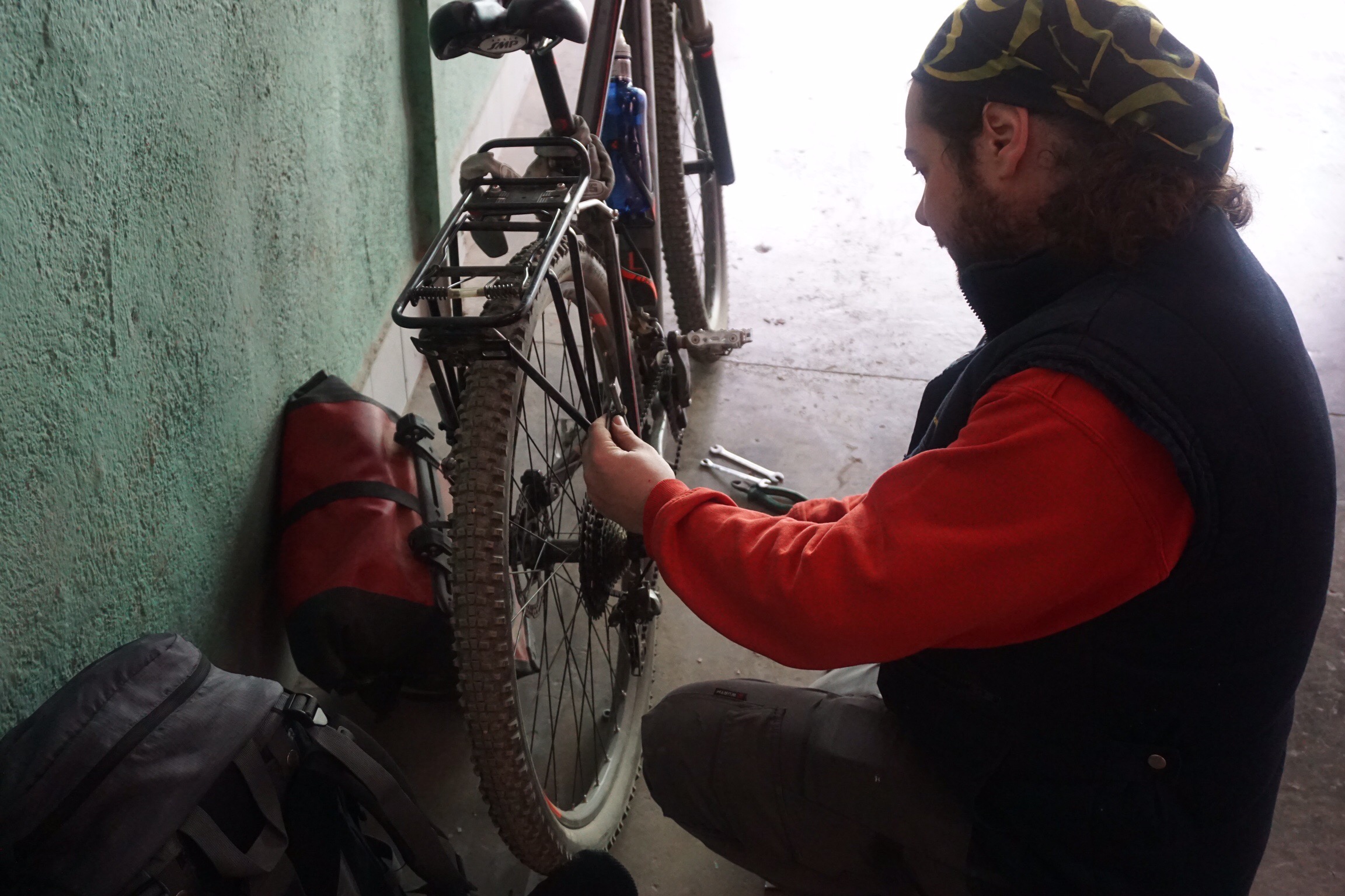 Heute Früh um genau gesagt, 07:54 Uhr saß ich wieder auf dem Rad in Richtung Cáceres, in der Hoffnung einen Fahrradladen zu finden. Gelandet bin ich letztendlich bei einem Karrosseriespengler, der mir 2 neue Halterungen geschweißt hat. In letzter Minute fand ich in Cáceres wieder eine Pilgerunterkunft bevor es bei 6 Grad zu schütten begann.