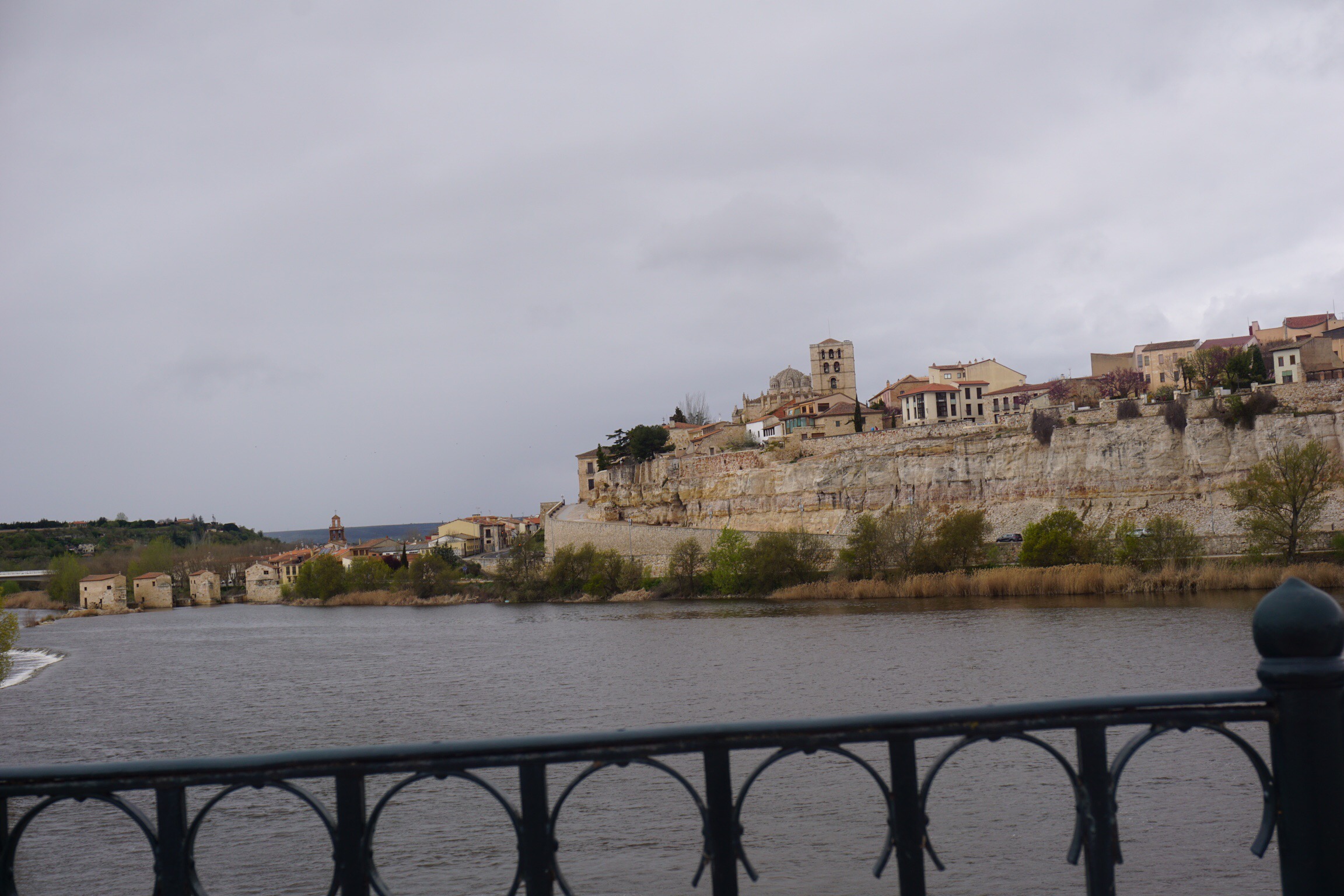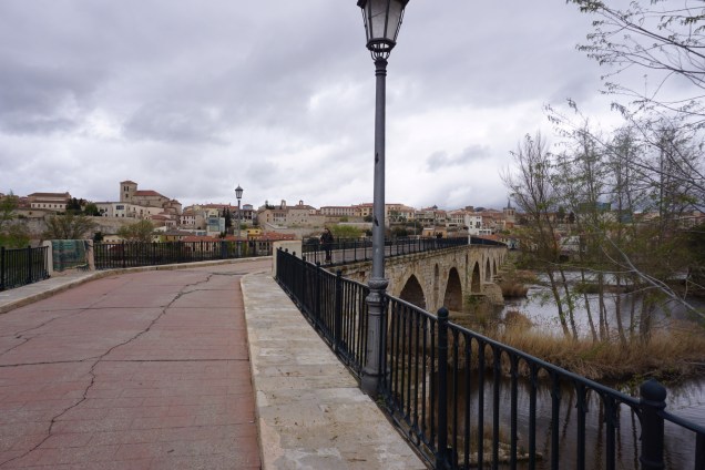 Als ich heute früh um 7:45 Uhr wach wurde, war es noch stockfinster, und gerade mal 20 Minuten später taghell. Ich packte langsam meine 7 Sachen, und setzte mich Punkt 9 Uhr aufs Rad. Obwohl der Wetterbericht keinen Regen vorhersagte, begann es kurz nach 9 Uhr zu regen, und hörte den ganzen Tag nicht auf. Erst als ich in Zamora ankam, regnete es mal nicht, sodass ich wenigstens ein paar romanische Bauten fotografieren konnte. Die 70.000 Einwohner Stadt, liegt am bekannten Fluss Rio Duero.